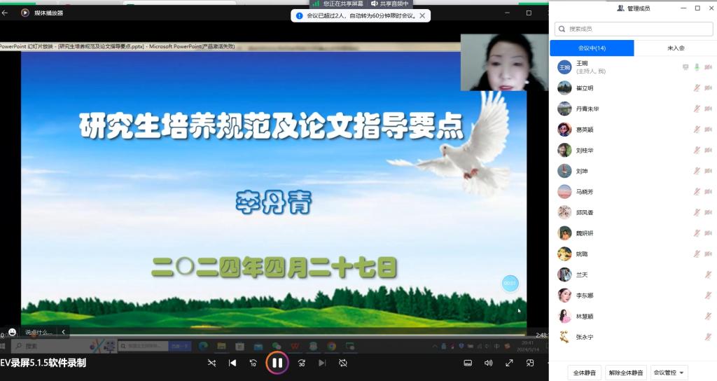 浙江大学李丹青教授主讲了本次培训首个专题《研究生培养规范及论文指导要点》。李教授围绕“研究生培养规格与培养方式”和“导师的指导能力与指导方法”两个方面进行了分享。