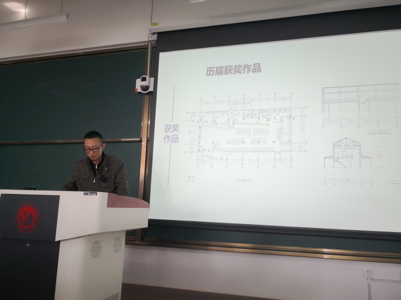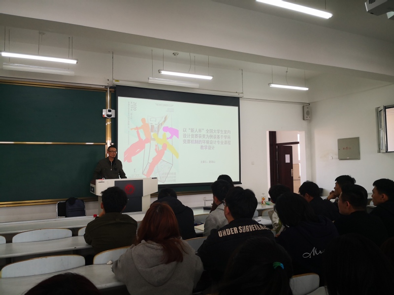 赵海山教授首先向同学们介绍了国内与环境设计专业相关的学科竞赛,并简要分析了各学科竞赛的特色,使员工对本专业学科竞赛相关情况有了整体的了解。随后,以“新人杯”全国大员工室内设计竞赛为例,用丰富的阅历结合大量例子展开详细又易懂的解释,详细梳理了2000年大赛成立至今的获奖作品,深入浅出的为员工剖析了当前比赛获奖作品的共同特点。并从作品选题、分析图绘制、排版等几个方面对参赛作品提出针对性建议。结合自身参赛经验,总结经验如下:1.对当下国家战略、政策背景、热点问题的关注;2.积极参与国内外专业权威机构的学术论坛与竞赛评比活动;3.掌握设计具体问题的梳理方法(环境分析、场地分析、建筑分析、室内设计分析等等);4.强化设计思维与表达的逻辑性;5.更新专业技能储备,提升设计表达技巧与方法。最后,从以赛促教的角度,对专业课程改革提出了几点建议。