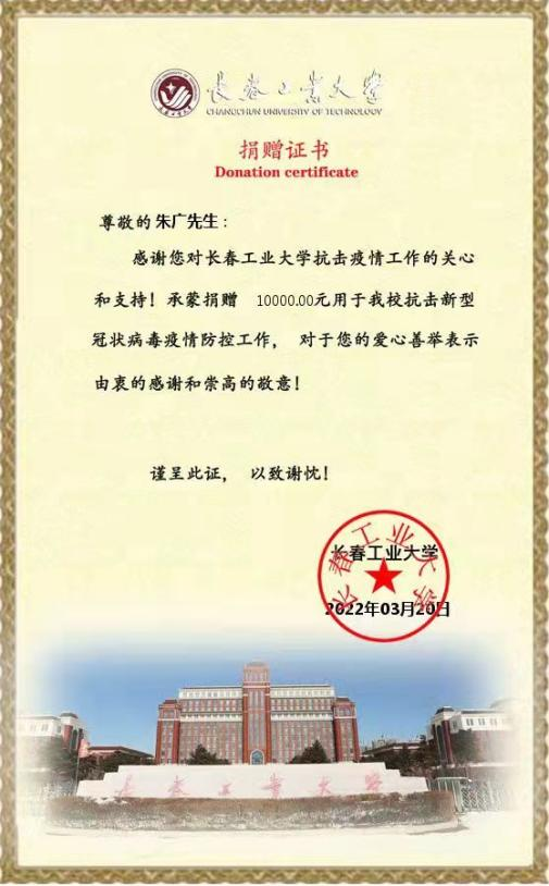 以朱广、黄冬、马庆瑞、宋小华、方毅、刘锐、谢亚男为代表的各级校友和社会各界人士向永利集团3044欢迎光临、公司捐款捐物。各位校友慷慨捐赠母校的善举,充分体现了校友感恩母校、心系母校师生的深情厚谊,温暖了整个校园。公司员工和同学们心系永利集团3044欢迎光临积极参与捐款活动,同时为抗击吉林疫情自发地向吉林省红十字会和长春市红十字会献出自己的爱心。