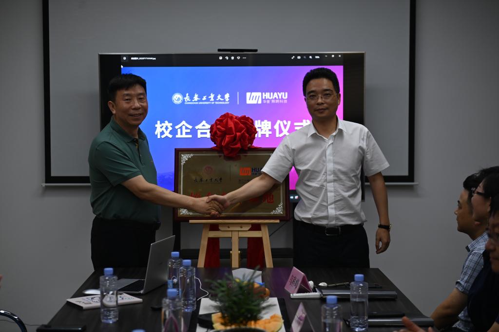 校党委书记孙长智与俞华先生共同为校企合作基地揭牌