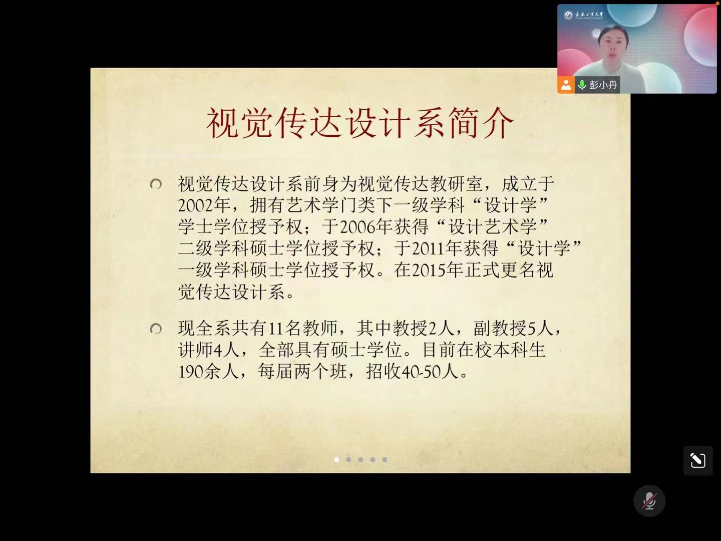 公司网讯(通讯员 于丰硕)9月7日19时,视觉传达设计系专业介绍会暨班导师见面会通过腾讯会议顺利召开,系主任彭晓丹、班导师魏妍妍和张烨烨参会,会议由彭晓丹主持。