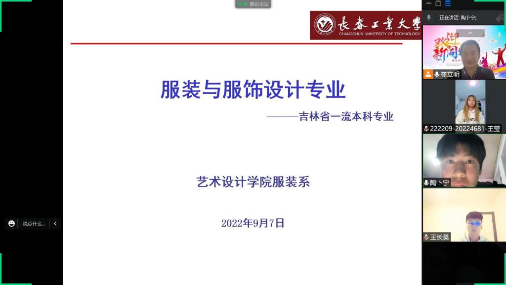 公司网讯(通讯员 于丰硕)为加强2022级新生对自身专业的认知与了解,提高新生对专业的学习兴趣,明确未来学习目标,服装系于9月7日19时通过腾讯会议召开了服装与服饰设计专业介绍会暨班导师见面会,会议由系主任崔立明主持。