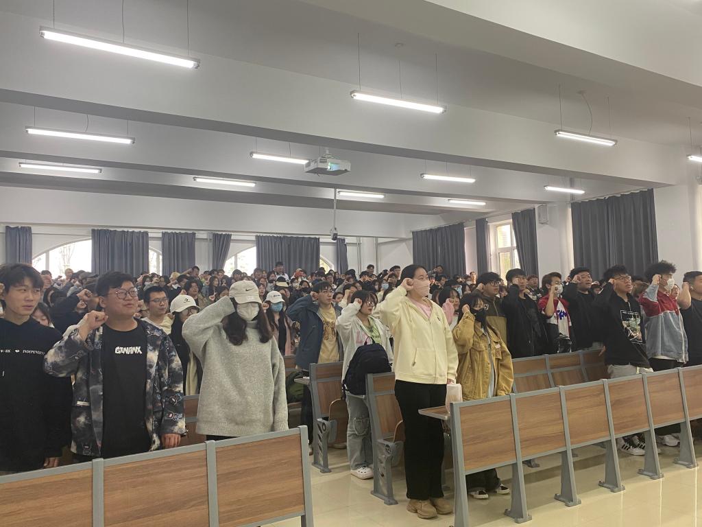 辅导员助理苏文敏首先带领全体参训员工学习了《2022级员工军训工作手册》,内容涵盖军训补训计划、评优项目、军训守则以及作息时间,全体参训员工进一步了解了军训补训相关内容和要求。在教官见面会环节,三位承训教官分别与公司所在的三营十一连三个排的全体员工见面,并在教官孟庆安的带领下全体员工进行了军训宣誓。整齐划一、铿锵有力的声音充分表达出全体参训员工的信心和决心。