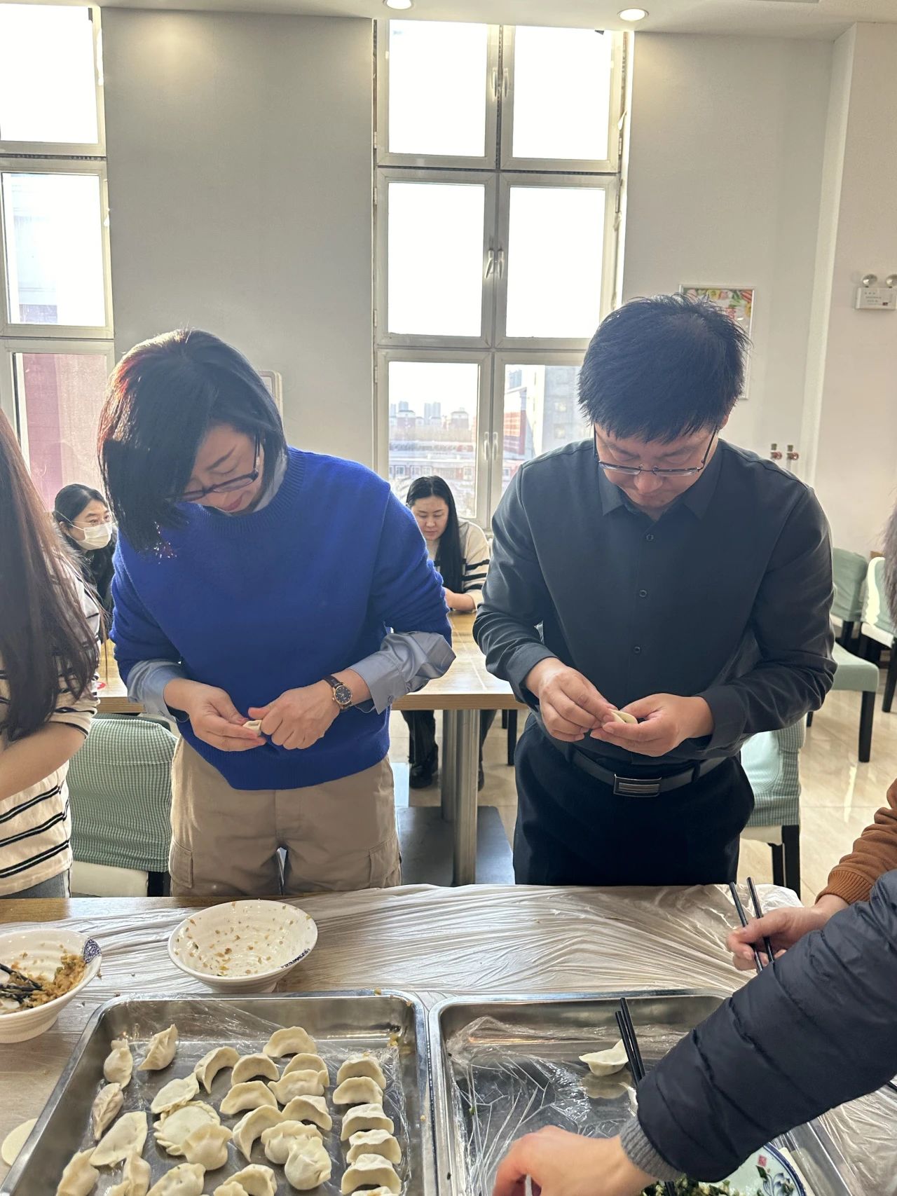 在热闹的游戏过后,大家一起包饺子,边包边聊天,有说有笑,和谐欢快,进一步增进了公司教职工之间的交往交流,增强了大家的凝聚力。