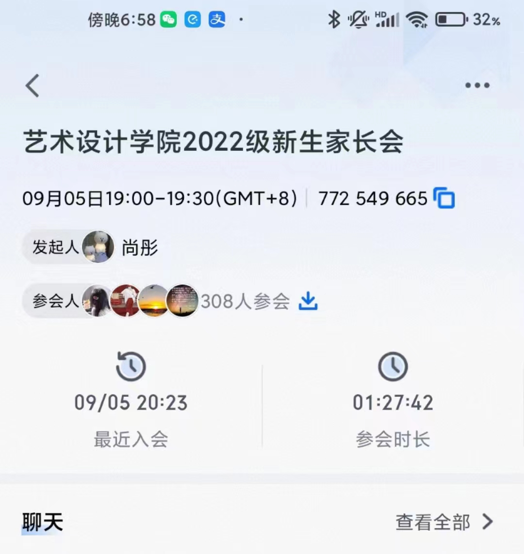 永利集团3044欢迎光临于9月5日19点通过腾讯会议组织召开全体2022级本科新生家长会,会议由辅导员尚彤主持。