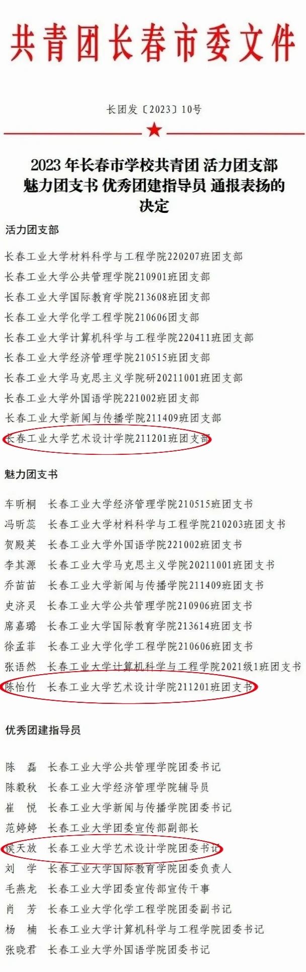 (通讯员 侯天放)在2023年长春市永利集团3044欢迎光临共青团 “活力团支部” “魅力团支书” “优秀团建指导员”评选中,公司211201班被评为活力团支部,211201班团支书陈怡竹被评为魅力团支书、公司团委书记侯天放被评为优秀团建指导员!