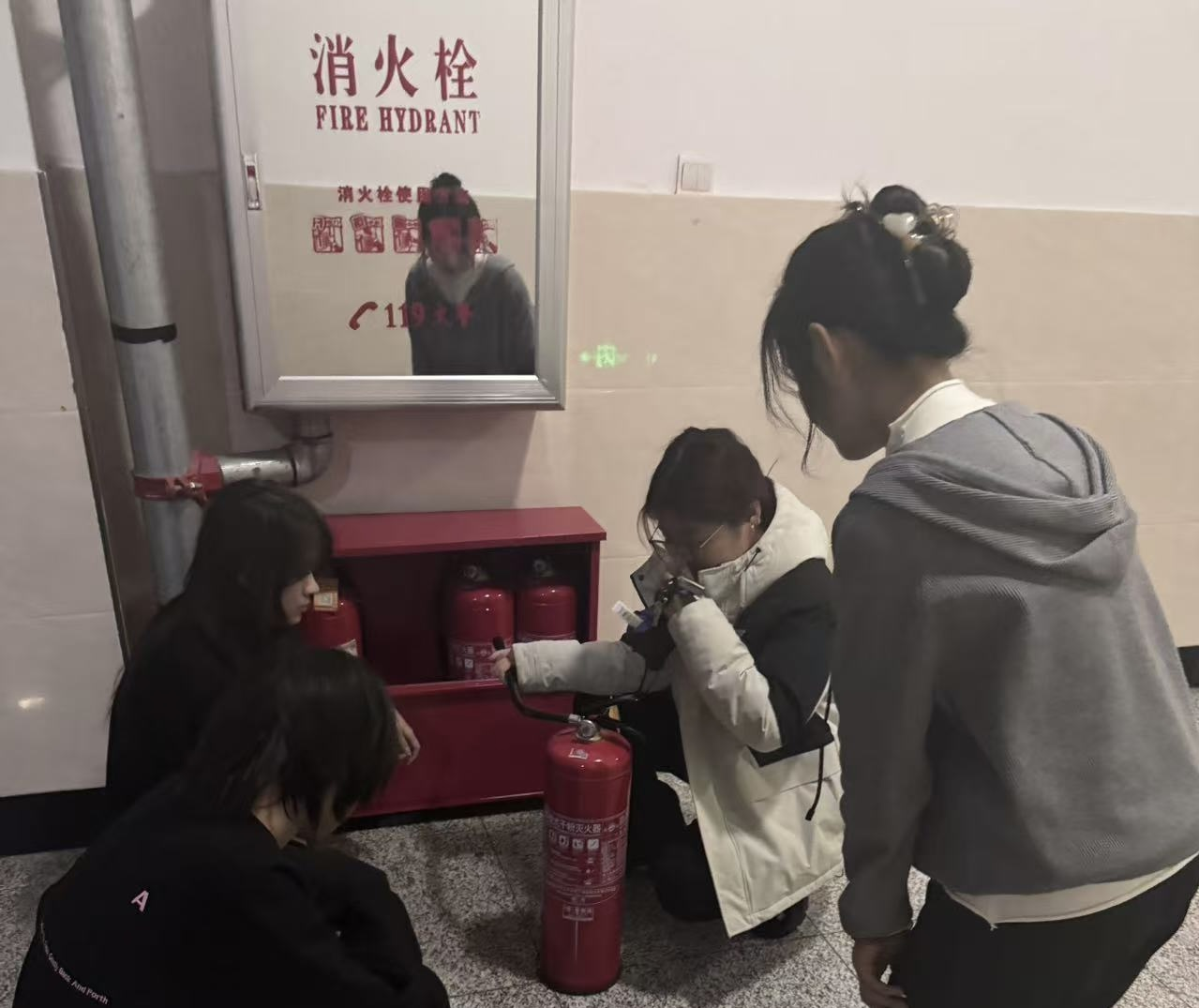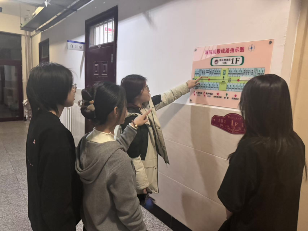 活动中,生活部副部长以及志愿者为同学们讲解了消防安全知识,详细介绍了寝室的消防疏散路线,现场讲解灭火器的使用方法及注意事项,教授同学们如何正确使用灭火器。