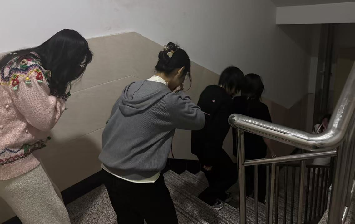 随后,带领部分同学在员工宿舍开展了实地消防疏散演练,同学们用湿毛巾捂住口鼻,弯腰俯身,沿着安全通道有序、迅速地疏散至安全场地。