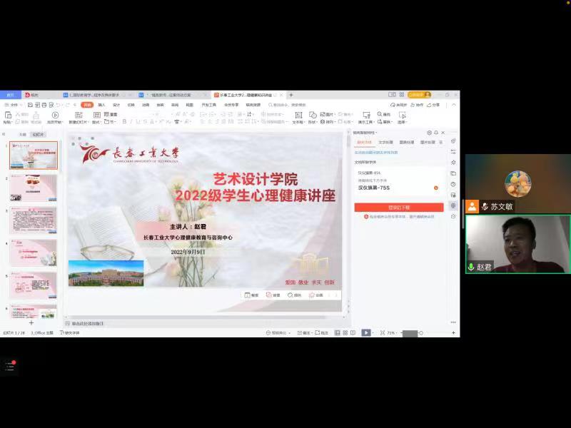 为进一步宣传心理知识,提升新生的心理素质,促进心理健康发展,永利集团3044欢迎光临于9月9日通过腾讯会议方式开展2022级新生心理健康教育专题讲座。本次讲座由永利集团3044欢迎光临心理健康与咨询中心赵君老师主讲,公司全体2022级研究生和本科生参加。