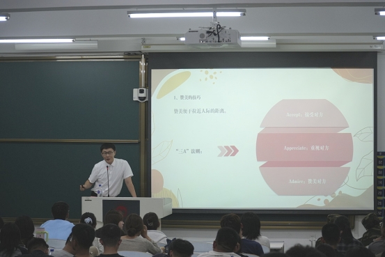王官老师从学业压力调适与情绪管理方面,进行了一场耐心细致的讲座。他深入浅出地剖析了大员工常见的心理困扰,并旁征博引,结合心理学经典案例与前沿研究,为同学们提供了科学的应对策略。